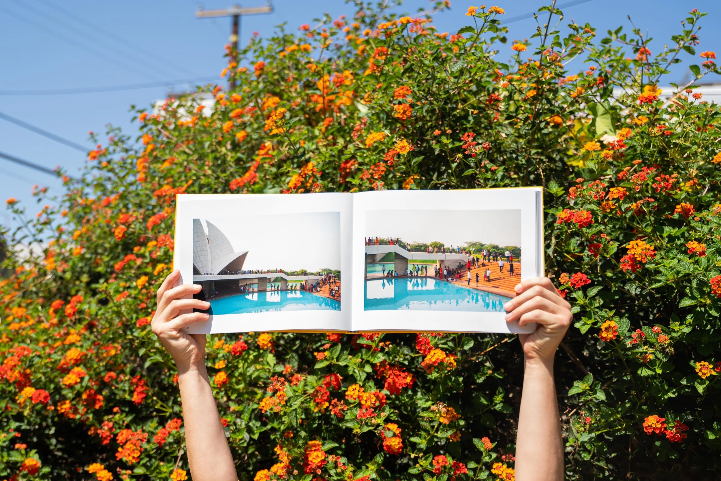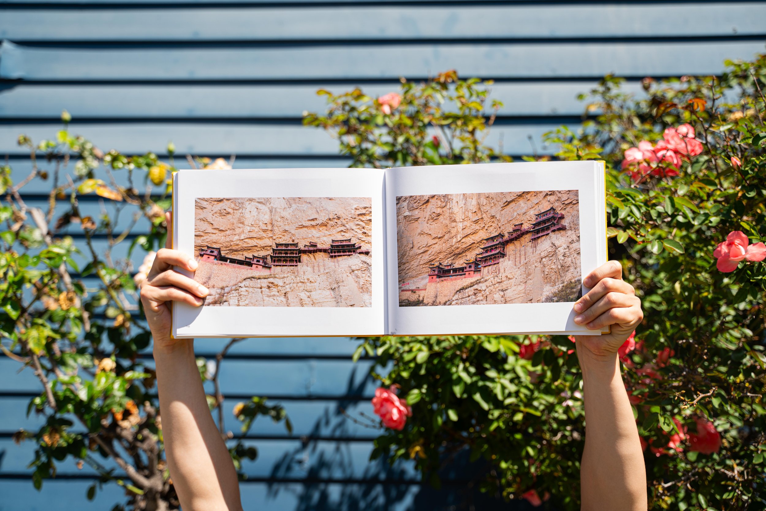 8.5in × 11in linen hardcover book.